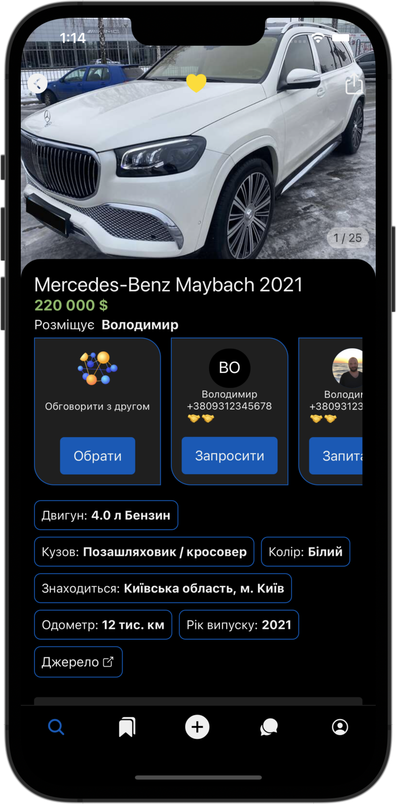Створюйте чати стосовно оголошень, які вас цікавлять, додаючи друзів, що нададуть рекомендацію про автора